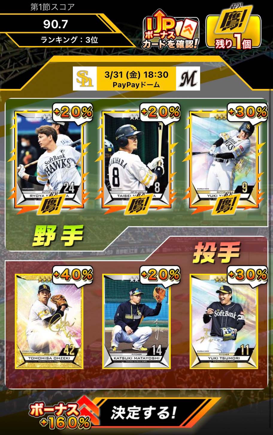 福岡ソフトバンクホークスの各選手のプレイシーンがカードになりました。お気に入りの選手のカードをたくさん集めましょう!