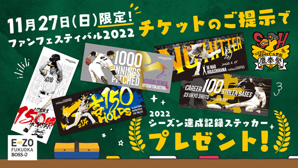 ファンフェスティバル2022チケットをお持ちでBOSS E・ZO FUKUOKAへご来館の先着10,000名に「2022シーズン選手達成記録ステッカー」をプレゼント!当日のチケットを持ってE・ZOへ行こう!