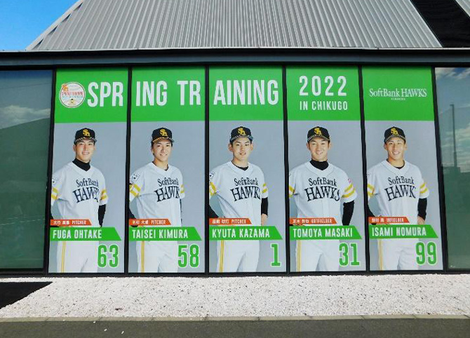 屋内練習場の壁面に2023年度新入団選手のパネルが登場!スプリングトレーニング in 筑後の来場記念に♪