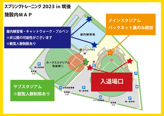 2月1日から開催する宮崎での春季キャンプおよび筑後でのスプリングトレーニングでは、ファンの皆さまに安心して楽しんでいただけるよう会場内では感染防止対策を講じたうえで観覧環境を提供してまいります。