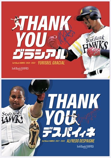 2月23日(木・祝)に、WBCキューバ代表とホークス(A組)の練習試合をアイビースタジアムで開催します。試合当日は、入場者プレゼントとして、昨年までホークスに所属していたデスパイネ選手とグラシアル選手の「ありがとうボード」を先着順で配布いたします。